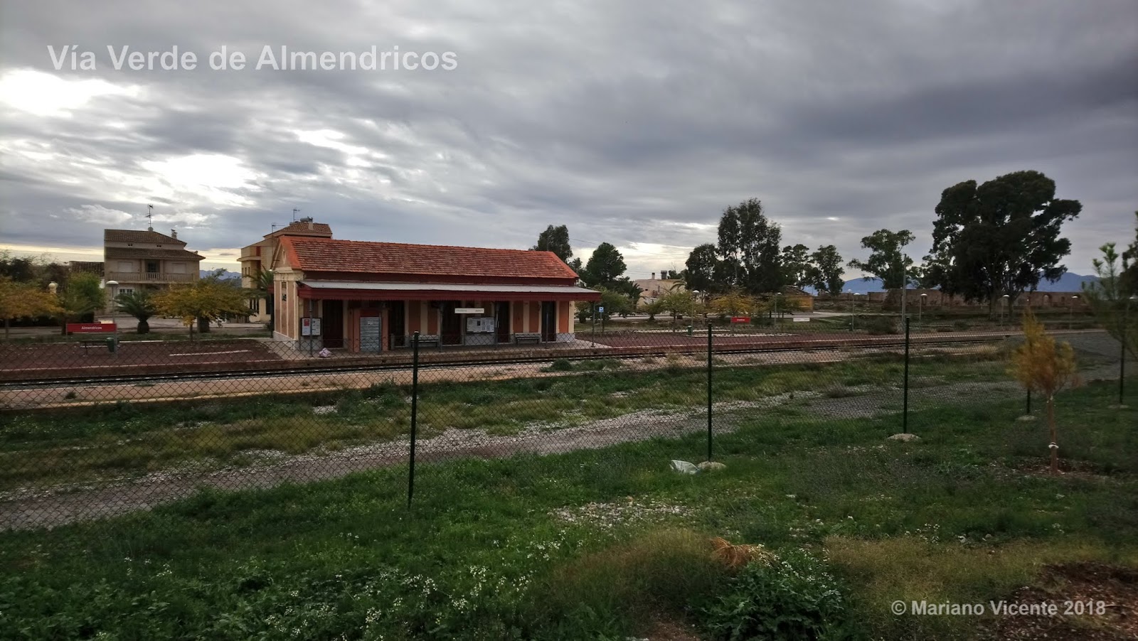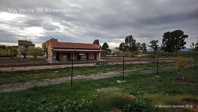 Fue hacia 1888, cuando la compañía inglesa The Great Southern of Spain Railway Limited, comenzó a construir la línea de ferrocarril que uniría Águilas con Almendricos, que entraría en funcionamiento 2 años más tarde. Hasta Huércal-Overa lo haría en 1891 y hasta Zurgena en el 1892. A Albox llegaría 1893. En el 1994 lo hace hasta Purchena y en el 95 a Serón y Baza. En 1941 pasaría a manos de Renfe hasta su cierre el 1 de enero de 1985. Por fortuna, gracias a ser subvencionado por la Comunidad Autónoma de Murcia, se mantuvo en funcionamiento el tramo entre Lorca y Águilas, continuación de la línea de Murcia a Lorca. Todo esto ha facilitado que a día de hoy pudiéramos subir a un cercanías que sale de la estación de Murcia a las 9.47 con dirección a Almendricos. Poco después de las 11 nos encontrábamos en el anden del apeadero con nuestras bicicletas, Antonio Máximo, Matías Martín y un servidor, Mariano Vicente.