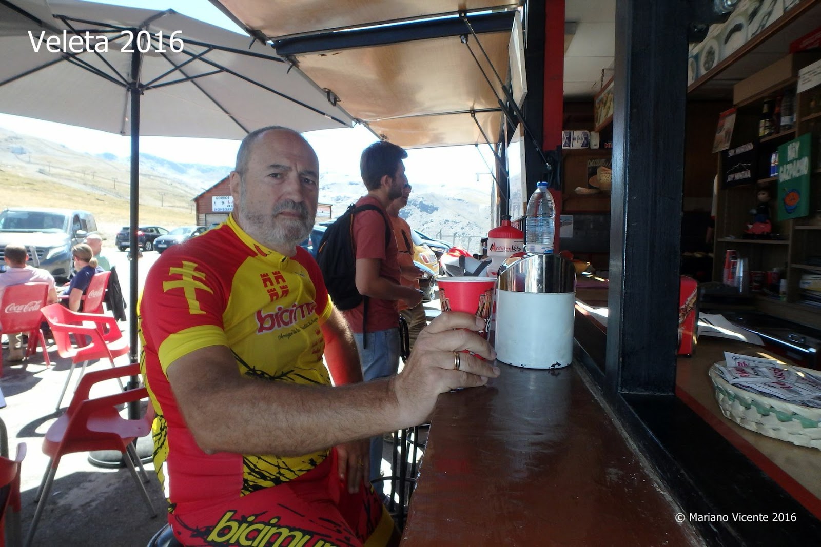 El camarero del chiringuito, chico cercano y amable, me confiesa que también es ciclista y me pone al día de todo este barullo de coches y camiones. Me alienta a continuar; que solo quedan 11 kilómetros, le confieso que estoy por desistir. Me pregunta que de dónde soy y se sorprende de que venga en bicicleta desde Murcia. Le cuento por encima las vicisitudes para sortear la A-92 y me comenta una anécdota de ayer mismo donde la Guardia Civil tuvo que "rescatar" a un grupo de ciclistas perdidos en la vía de servicio, precisamente entre Baza y Guadix. !Como me alegro de haber tomado el autobús! Tienes suerte me dice, ayer mismo nevó en el Veleta, quedo todo blanco, pero enseguida se despejó en cuanto salió el sol, ha sido la primera nevada del año.