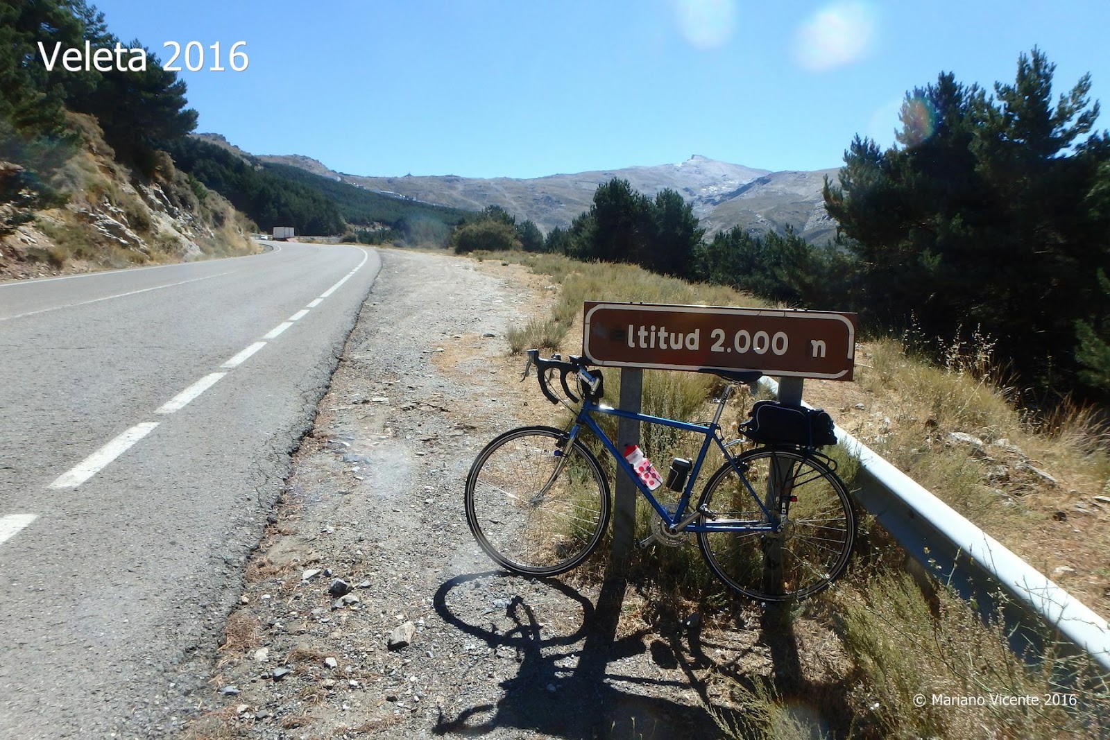 Son solo 11 kilómetros; me ha dicho el camarero en un tono que auguraba una cierta facilidad para superarlos. Pero en esta vida las cosas no siempre son como las deseamos. Yo miraba de reojo al Veleta y no lo veía tan fácil, pero al final comienzo a pedalear confiado y haciéndome algunas conjeturas; llevo más de 40 kilómetros y solo me quedan 11, no puede ser tan duro. ¡Que equivocado estaba! No sé si era la altitud, el cansancio o mi cabeza, pero buscaba constantemente excusas; el paisaje, una foto... para detenerme y recuperar el aliento. Eran solo unos instantes pero me sabían a gloria. Así, uno tras otro, fui superando los kilómetros. El Veleta casi al alcance de la mano, tan cercano y tan lejano al mismo tiempo.